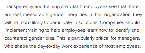Most of the findings weren’t surprising. “Women are still underrepresented at every level in the corporate pipeline.” Newsflash.