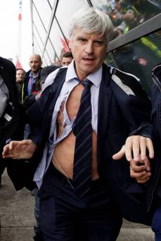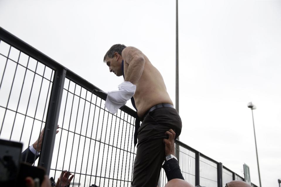 Protesters reportedly screamed “Naked! Naked!” translating to “Nu! Nu! Nu!” which you have to admit is a pretty baller chant. I’m not saying I condone this, I’m just saying the image of a shirtless executive climbing a fence to escape a pantsing is something we’ve all wanted to see.